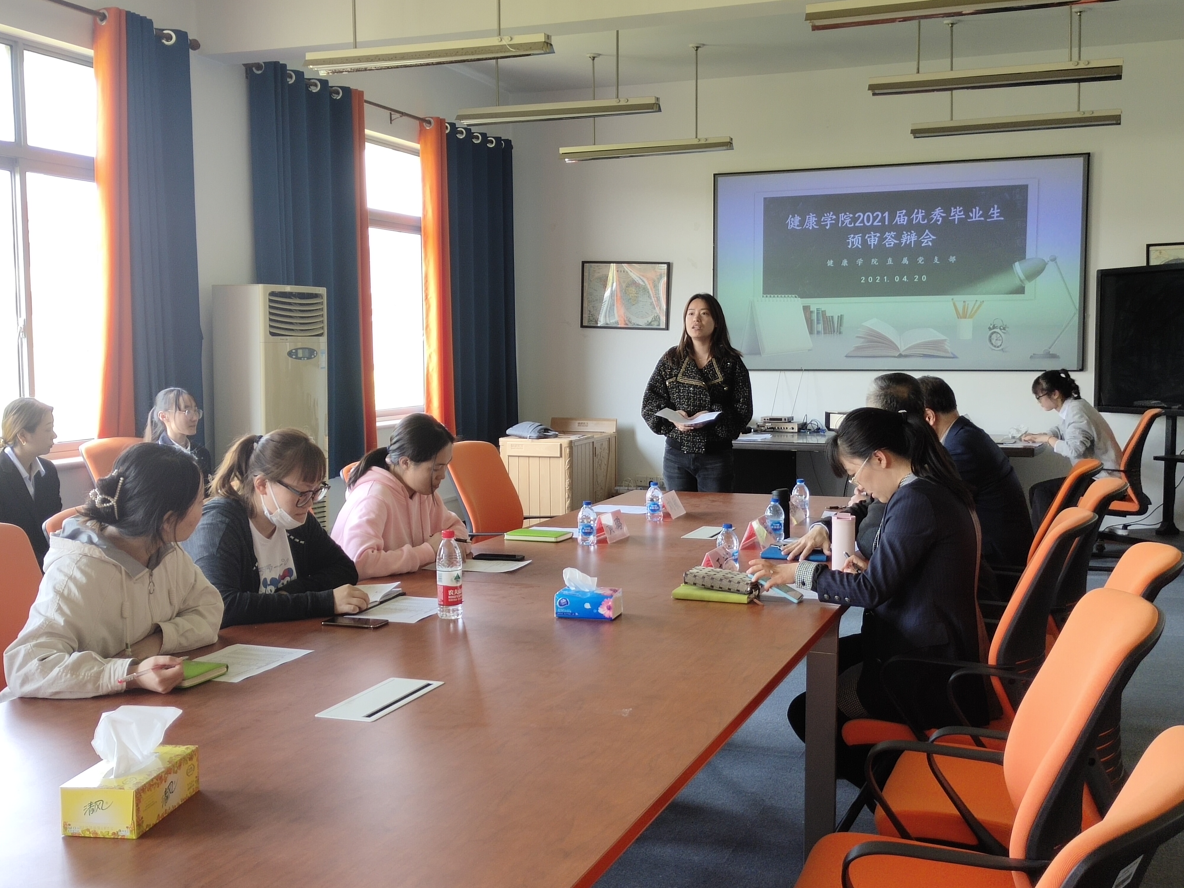为全面贯彻党的教育方针,适应新时代新要求,落实立德树人根本任务,培养德、智、体、美、劳等全面发展的社会主义事业建设者和接班人。365英国上市网于2021年4月20日14:00在天华楼458教室开展2021届“上海市优秀毕业生”及“天华学院优秀毕业生”答辩评审会。出席本次答辩的评委老师分别是365英国上市网常务副院长徐晓锋老师、365英国上市网直属党支部书记蔡勇永老师、365英国上市网副院长王茜老师、365英国上市网副院长刘敏老师、365英国上市网直属党支部副书记黄璐老师、应用心理学专业党小组组长刘卫卫老师、康复治疗专业党小组组长孙玺瑞老师以及365英国上市网分团委书记张钰源老师。