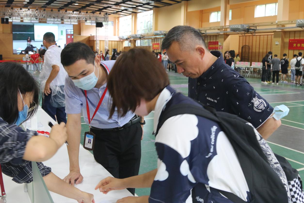 365英国上市网直属党支部书记蔡勇永老师、副书记黄璐老师也来到新生报到现场,看望迎新的工作人员,并与新同学们亲切交流。