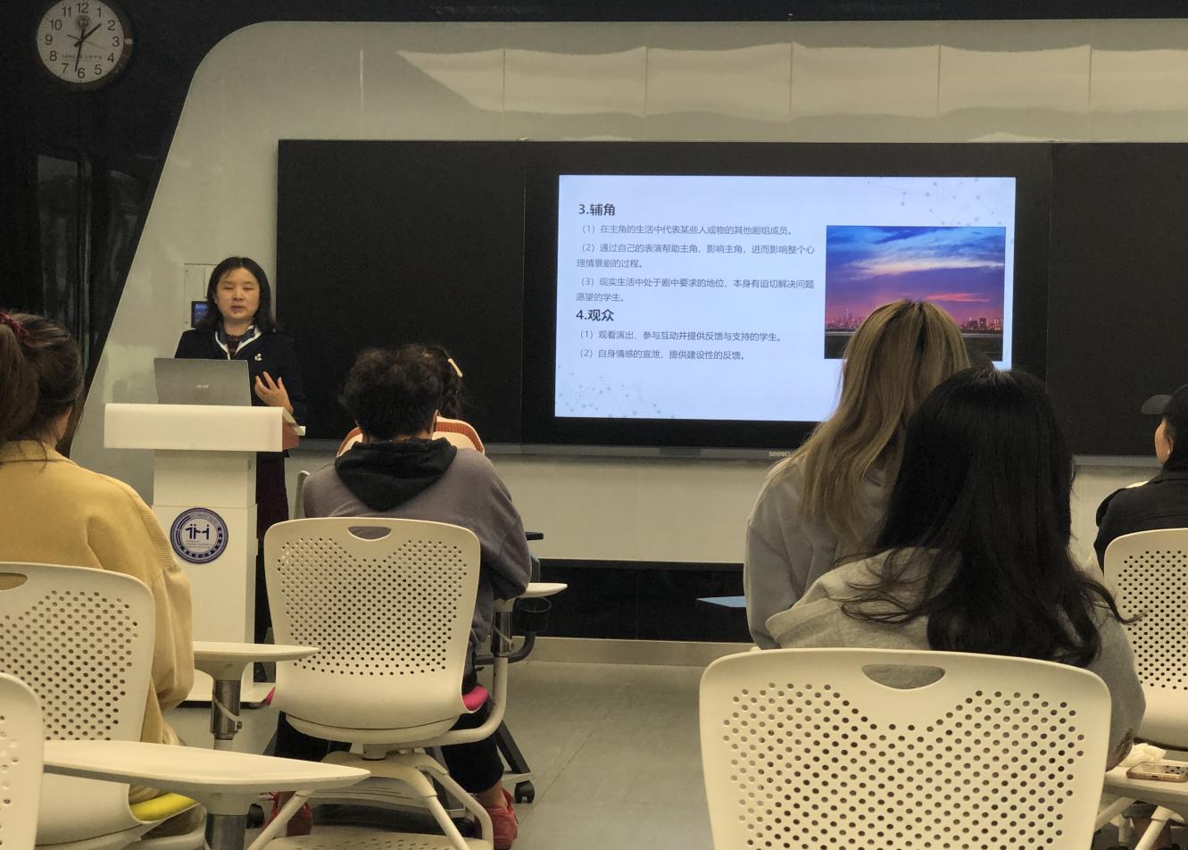 讲座开始前,王茜老师先向大家简单地讲述了李老师的学术经历和在各领域所取得的研究成果。随后,李老师为同学们具体介绍了关于心理情景剧的相关知识,包括心理情景剧的概念、心理情景剧的理论基础、心理情景剧的构成要素、心理情景剧的常用技术以及优秀心理情景剧的特点。在讲座中,她结合自己的参赛经历以及实践经验与在场同学分享了心理情景剧技术在心理学研究及实际生活中的应用价值。李老师在理论知识的讲述中还会邀请在场的各位同学上台进行模拟演练,将所讲的技术和方法生动形象的呈现在同学们的眼前,让同学们在参与中对心理情景剧的各种技术留下了深刻的印象。
