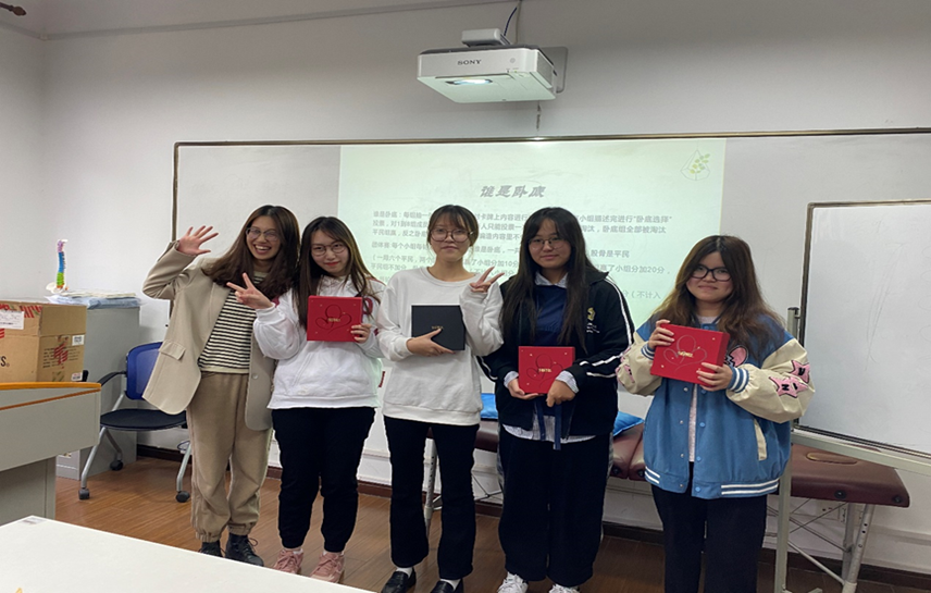本次竞赛共有四个班级参加,分为初赛和决赛两场,每个班级活动形式各不相同,活动内容丰富多彩。下面就其中一个班级的情况进行介绍:比赛主要是通过“团体赛”的方式进行,在班助理简单介绍活动规则后,比赛正式开始。