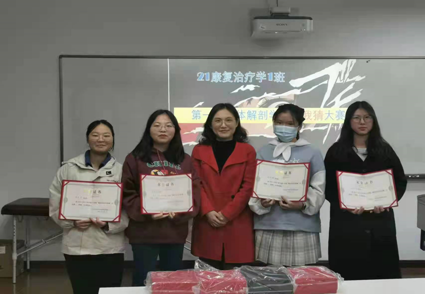 最后,刘敏副院长也对这次活动进行了总结。刘院长对此种类型的竞赛活动给与了高度肯定,指出解剖学知识竞赛21级新生同学大放异彩,也表达了对同学的希望与祝愿。同时两位老师为获奖同学、团体颁发证书,合影留念。