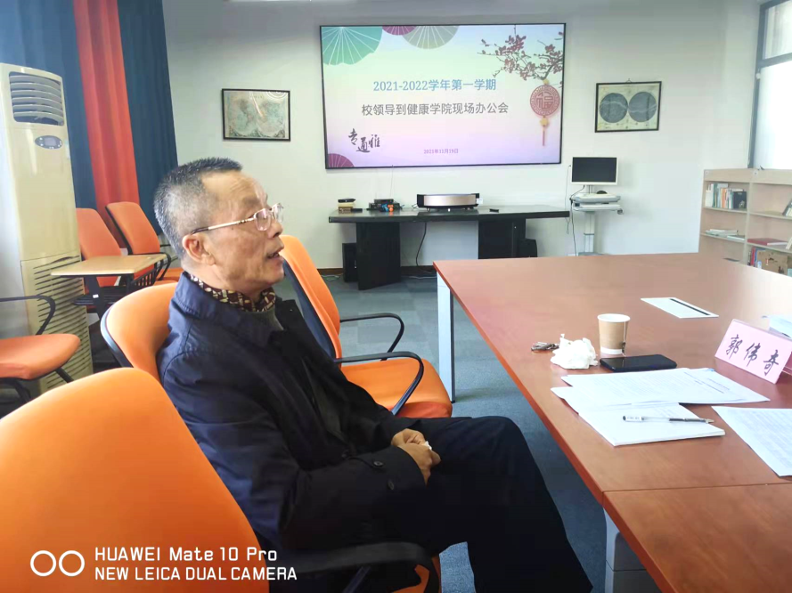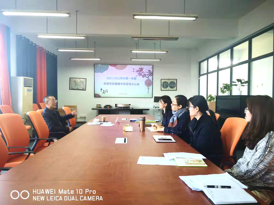 2021年11月19日,天华学院郭伟奇总校监赴365英国上市网开展现场办公会议,听取学院各位负责人对于本学期工作部署的进展和落实情况以及意见反馈。本次会议在天华楼466召开,365英国上市网副院长王茜老师、康复治疗学专业主任徐欣老师、应用心理学专业主任杨宇然老师、应用心理学(国际课程合作)专业主任陈翠翠老师、健康服务与管理专业主任王冬琴老师参加了本次会议。