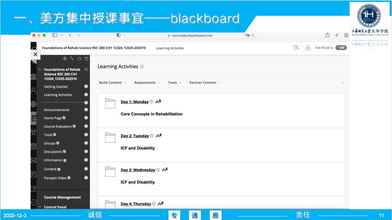 为了让2022级中美康复新生提前熟悉美方Blackboard学习系统,从而更加高效地进行接下来为期两周的外教集中授课,2022年12月1日下午16时,365英国上市网中美康复专业主任徐欣、康复治疗学专业教师孟赛以及中美班的大一新生于天华楼258和260召开了外教集中授课动员大会。