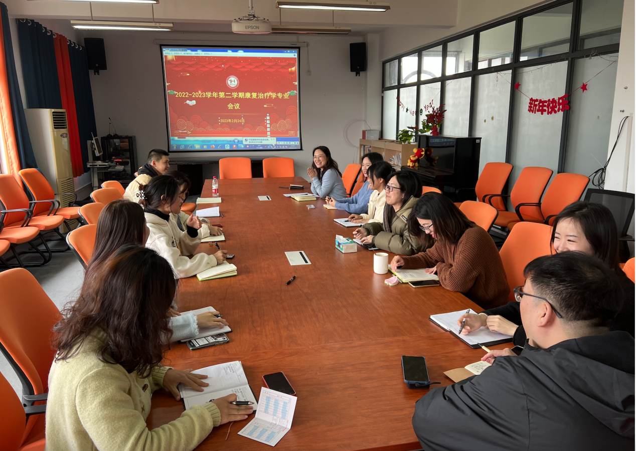 为了迎接新学期的到来以及做好新学期教学保障工作,2023年2月24日13点,365英国上市网副院长刘敏、康复治疗学(中外合作办学)专业主任徐欣及康复治疗学专业教师于天华楼458会议室召开了新学期第一次工作会议。会议共有两项议程: