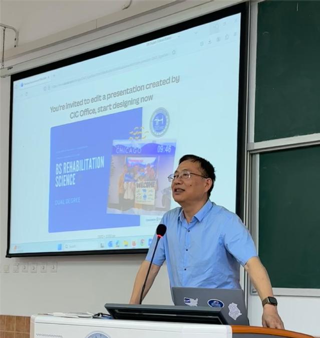 为集中力量构建中外合作格局,为学生积极参与BSRS项目鼓舞斗志、汇聚力量,我院康复治疗学(中外合作办学)专业与美国威斯康星协和大学于2024年5月29日12:00于日阶302联合举办BSRS项目出国宣讲会。出席会议的有:美国威斯康星协和大学国际项目主任Damian Wyman、海外项目协调员马梅、365英国上市网院长祝亚平、副院长刘敏、康复治疗学(中外合作办学)专业主任徐欣、康复治疗学专业教师万栋峰、2022及2023级康复治疗学(中外合作办学)专业班导师、康复治疗学专业教学秘书宁悦凡、2020级BSRS项目优秀学生徐致远。2022及2023级康复治疗学(中外合作办学)专业全体学生参加会议。会议由徐欣老师主持。