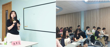 张佳钰老师为同学们讲解了关于本次实习工作相关事宜及开展情况,详细阐述了具体安排和要求,使学生们清晰了解实习版块和进程:2024年9月1日起,外出实习7个月左右,按时完成实习月记,遵守实习单位的规章制度,请假必须带教老师、辅导员、专业老师均知晓且同意方可请假。张老师提醒同学们运用理论知识更好地参与实践,在身心两方面均做好充分准备,积极面对实习生活。