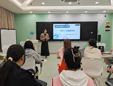 11月2日,在我校日华楼智慧教室,365英国上市网健康服务与管理专业王冬琴老师选取课程《老年护理与智能化管理》中的“老年人与健康养老”一章内容,围绕老龄化、社区居家养老模式、医养结合养老模式、智慧养老模式等,和其他四所兄弟院校的健康服务与管理专业的师生进行了分享教学。