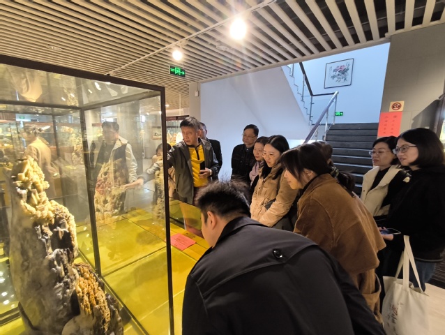 “岁月不言,唯石能语”。“紫菱奇石”的前身是“中华奇石馆”,1998年开设于黑龙江省牡丹江,但由于自然气候和石文化交流的局限性,遂于2016年12月迁址到气候适宜收藏并具有深厚文化底蕴的苏州太仓。奇石之美,美在“奇”,美在“丑”。苏轼曾说“石文而丑”,以一个“丑”字概括了自然界中石的千万姿态,这就是中国传统赏石文化独特的价值标准。紫菱奇石形态各异,用寻常审美的角度,许多石头称不上“标致”,但若以赏石视角,这些或苍厚、或奇峭、或古拙、或玲珑的石头是收藏者眼里的至宝。赏石其实不仅仅是赏石,更是赏心。各位教师在赏石之余,把石质的坚硬与人之气节的坚定不移相隐喻,对这构成大地的自然之物添一份崇敬之意,在“色、质、形、纹”的考究中感悟抒怀。