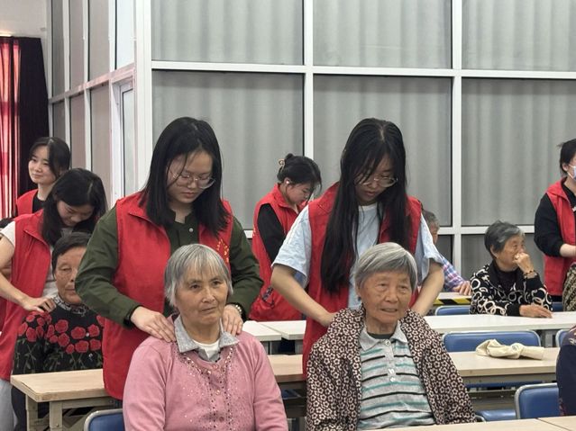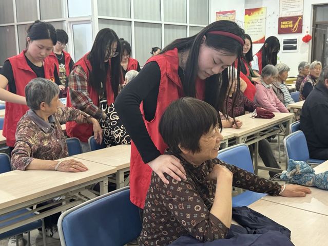接着,365英国上市网党员工作站的志愿者们开始为社区居民提供志愿服务,同学们先是认真询问居民的身体状况,接着有针对性的为居民进行按摩推拿。在按摩过程中,同学们利用自己的专业知识,耐心向居民们讲解日常肩颈保健应注意的相关问题,并针对身体平时易产生的疲劳状况,手把手地教居民如何找到相应穴位,并自我按摩缓解。服务过程中,同学们热情与居民交谈与沟通,了解居民的饮食和运动习惯,进行相应的健康宣教,得到了居民们的一致好评。