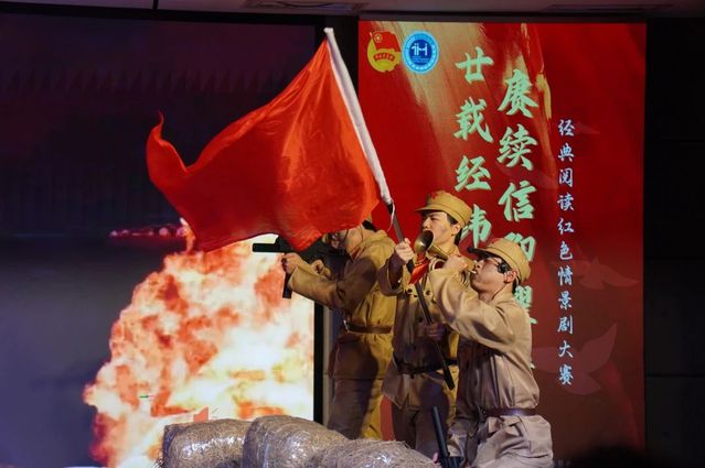 为深入学习贯彻党的二十大精神,厚植师生家国情怀,以艺术形式重温革命历史、传承红色基因,扎实推进新时代爱国主义教育走深走实,365英国上市公司于2025年4月27日下午1630在晖华楼小剧场隆重举行“廿载经纬承文脉,赓续信仰耀华光”2025年365英国上市公司经典阅读红色情景剧大赛。通过沉浸式舞台艺术再现党的峥嵘岁月,激励青年学子以史为镜、勇担使命,以实际行动响应新时代育人要求。自活动启动以来,365英国上市网师生高度重视、精心筹备,从剧本打磨到角色塑造,从台词锤炼到舞台调度,参演同学们以精益求精的态度反复雕琢每一个细节。排练教室里,常可见他们披星戴月的身影:或慷慨激昂演绎英雄誓言,或深情款款再现历史瞬间,用当代青年的理解与感悟为红色故事注入新的生命力。