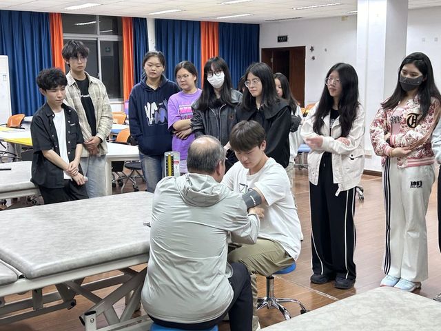 接着,由张荣健教授为同学们进行推拿手法的教学和示范。张教授给学生们详细讲解了关于肩颈部的适应症与穴位,通过随机选取一位同学进行推拿,向同学们生动展示如何找到正确的推拿位置以及使用正确的推拿手法。同时,张教授传授了他独特的指针手法以及“三个一”口诀,同学们谨记在心,受益匪浅。在张教授的指导下,同学们通过分组进行一对一推拿按摩,肌肉放松,进一步掌握治疗手法。张教授表示,同学们要将学到的知识转化为自己的技能,做到知行合一,以服务为己任,帮助他人。