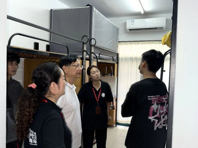 走访过程中,领导老师们与同学们进行了亲切交流,细致询问了大家的住宿适应情况、课程安排以及生活服务需求,向新生表达了学院的热烈欢迎和亲切关怀。