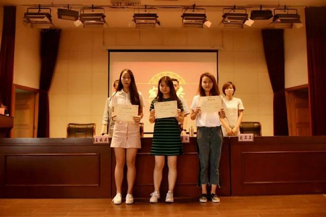 大会伊始,主持人“宣读表彰决议”,宣读了本学期党员工作站、学生会 、班助理、安全员、学习型宿舍、中英文辩论训练表现优秀的成员和团体名单。为了表示对他们一个学期工作与付出的肯定,老师们为他们颁发奖状和荣誉证书,以激励他们工作的积极性,让学生干部发挥模范带头作用,为其他同学树立榜样。