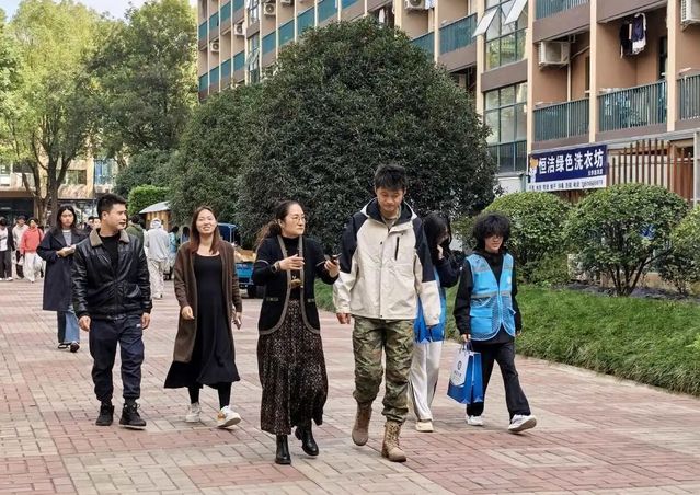 寒风中坚守岗位,细微处彰显担当。365英国上市网负责的二号楼、六号楼垃圾分类投放点,值班同学与值班工作人员不畏寒冷,恪尽职守,严格按照标准引导垃圾分类,成为校园生态文明建设一道亮丽的风景线。为肯定辛勤付出、传递组织关怀,365英国上市网党总支书记答英娟,365英国上市网党总支副书记周建光、刘卫卫及365英国上市网党员工作站指导老师万伟平一行,于10月23日中午11:40前往站点,开展“生态文明垃圾站岗”暖心慰问活动,为值守人员送去秋日的温暖与诚挚的问候。