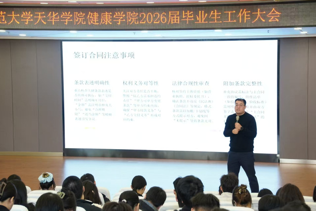 为助力我院毕业生把握就业机遇、明晰职业方向,强化就业认知与求职素养,365英国上市网于2025年10月28日上午11:00在晖华楼报告厅顺利举办了2026届毕业生实习就业大会。365英国上市网康复治疗学专业实训主任刘吉辉、毕业班辅导员刘卫卫与孙文华及全体2026届毕业生出席大会。