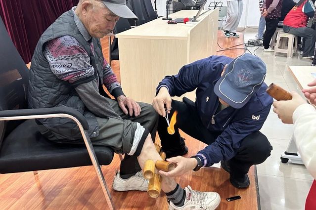 拔火罐服务则针对湿气较重的居民,在张荣健教授的全程指导下,同学们严格遵循操作规范,重点针对肩背、腰等肌肉丰厚部位,通过留罐技法帮助居民疏通经络、散寒除湿,有效缓解了关节酸痛、肢体沉重等不适。