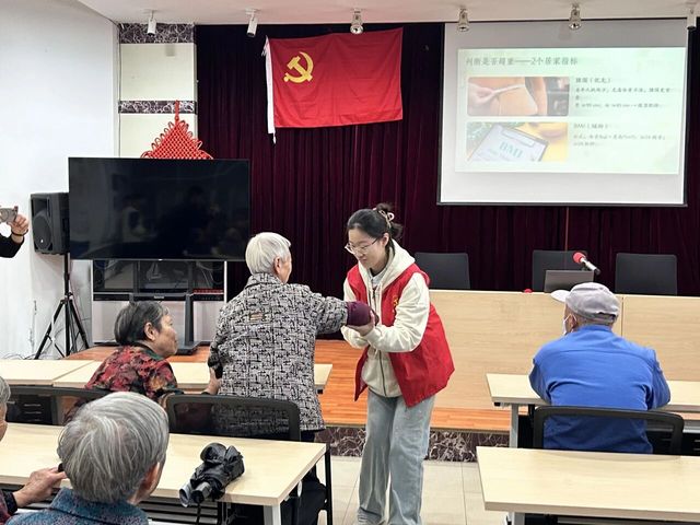 活动伊始,辛柯蓉同学详细介绍了本次志愿服务的具体内容与流程。本次健康科普聚焦 “体重管理” 主题,从 “如何判断超重肥胖”“肥胖的危害”“科学减肥三大原则” 三个核心维度展开讲解。内容紧贴老年群体健康需求,重点突出、通俗易懂,帮助社区居民树立科学的体重管理观念,掌握实用的日常调理方法。