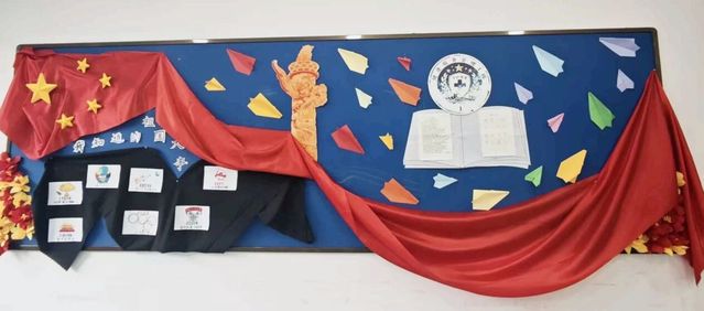 亮点:国旗红绸为底,华表、纸飞机冲向“蓝天”,寓意青春与祖国同行。