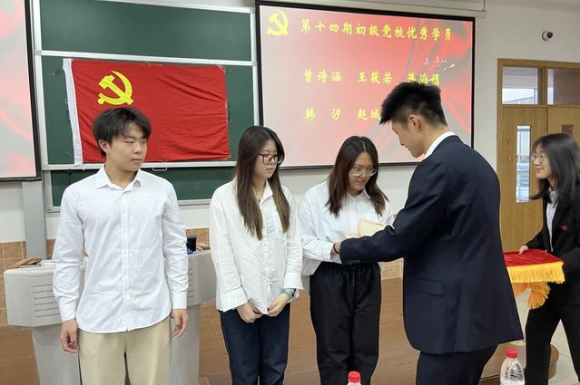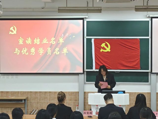 在庄重的颁奖环节,康复治疗学专业党支部书记孙玺瑞老师宣读了结业及优秀学员名单,党总支副书记周建光老师,应用心理学专业党支部副书记冯泽茜老师,党员工作站指导老师万伟平老师等为他们颁发优秀学员证书及结业证书。这份荣誉不仅是对学员们学习成果的肯定,更是他们政治成长道路上的关键一步。会场内响起了阵阵热烈的掌声,这掌声既包含着对获奖同学的衷心祝贺,也蕴含着对所有坚持到底、学有所成学员的肯定与鼓励。