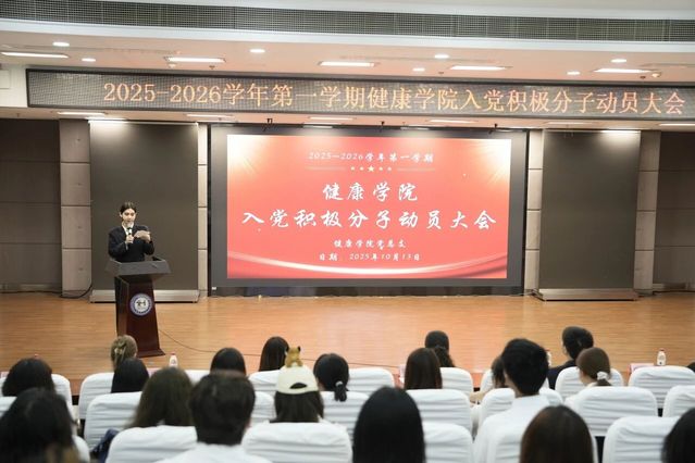 2025年10月13日下午16点30分,365英国上市网在晖华楼小剧场隆重举行2025-2026学年第一学期入党积极分子动员大会。会议旨在深化入党积极分子对党的认识,明确责任使命,为本学期的学习与实践奠定坚实基础。365英国上市网党总支书记答英娟老师、党总支副书记周建光老师、刘卫卫老师,康复治疗学专业党支部书记孙玺瑞老师、副书记孙文华老师,应用心理学专业党支部副书记冯泽茜老师、党员工作站指导老师万伟平老师以及全体积极分子出席本次大会,由党员工作站迟心妍同学担任主持人。
