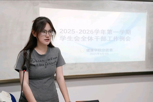 分团委书记张钰源老师首先对各位干部在新一届学生会中任职表示祝贺,并对大家在开学初的工作中所展现出的热情与担当予以肯定。同时,她对全体学生会干部提出三点要求:一是强化责任意识与政治觉悟,自觉发挥学生干部的模范带头作用;二是优化工作方法、提升工作效率,善用数字化工具学习,增强专业工作能力;三是合理平衡学业与工作关系,积极调整心态,扎实推进团队凝聚力建设。最后,张老师简要部署了本学期重点工作安排,希望各部门提前规划,有序推进。她表示,未来将加大对学生干部培训的支持力度,为大家提供更多学习和成长的机会,助力每一位干部在服务同学的过程中实现自我价值。