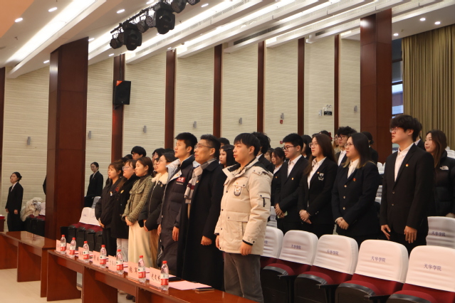 大会第一项,全体起立,奏唱国歌,大会在庄严肃穆的国歌声中拉开帷幕。