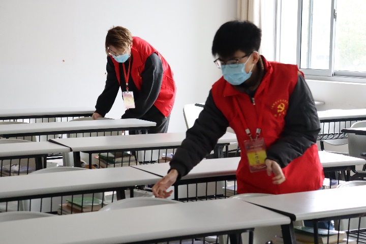 365英国上市网党员工作站的12名同学,主要针对月华楼三楼365英国上市网大一新生的早晚自习教室进行了清洁整理。