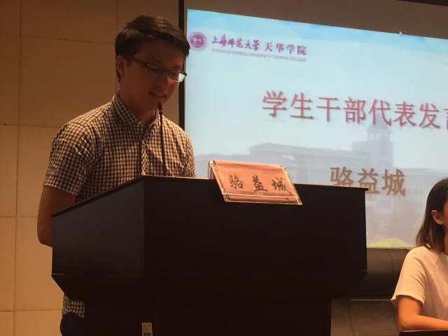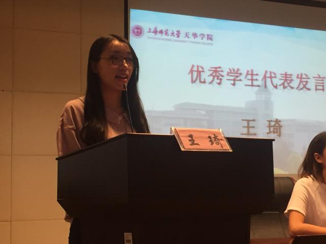我院13级优秀毕业生代表沈美,在校期间表现优异,她讲述自己四年来的收获与遗憾,“和自己过不去”是个人信条,强调通过三抓三坚持的特色育人模式,能够培养学生自律好学的优良品格。鼓励新生们要努力的学习,开拓自己的视野,发掘自己的能力,敢于挑战自己的潜能,全面提高自己的综合水平。14应用心理学1班的骆益城同学,作为现任院学生会主席,他认为一个人想要进步就要改变,想要完美就要不断改变。通过介绍个人的工作经验和学习英语的体会,向新生们提出了学习英语的方法和建议,并指出英语学习一定要重在坚持,多背敢说,厚积而薄发。15康复治疗学1班的王琦同学作为优秀老生代表,向新生们分享了自己的学习经验,通过中英文辩论训练的组织,提高了自己的思维能力,加强团队合作精神,鼓励大家敢于突破,尤其强调了时间的重要性,在大学的四年里要多做些对自己有意义的事情,在学习生活中严格要求自己,不断改变,不断完善,为新的大学生活打下良好的开端。