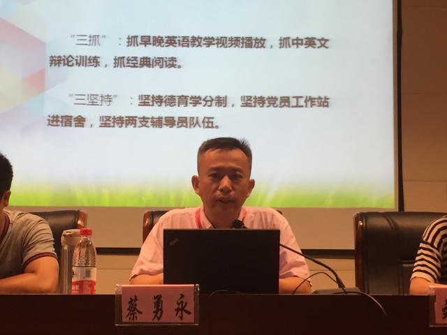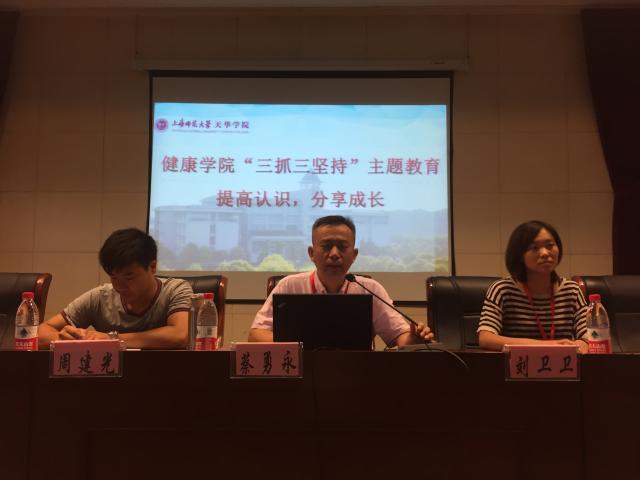 首先,蔡勇永老师从介绍天华“三抓三坚持”特色育人模式,解读开展此项工作的具体意义和要求,坚持“三抓三坚持”是践行“为做人而学习”校训的要求,天华的育人理念,是培养学生做人,让学生成为职业人,文明人,儒雅人;是提升学生素质内涵的迫切需要;随着社会发展,竞争力越来越激烈,当代大学生需要更广的知识面适应社会,服务社会,是提升学风、校风的实际举措。通过“三抓三坚持”是学生“要我学”变成“我要学”,养成积极向上的良好学风。