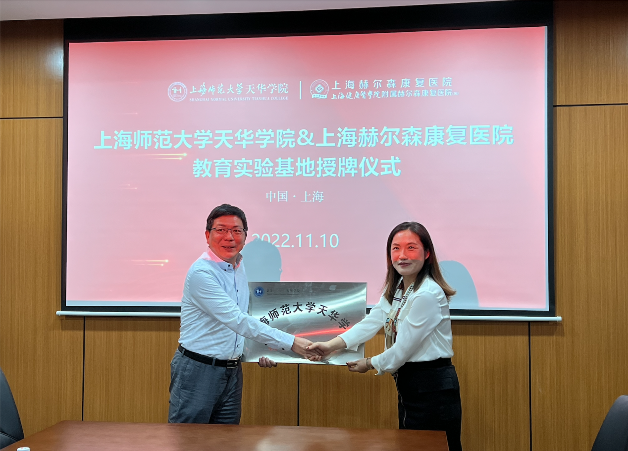 为进一步加强和创新医教研协同发展的医疗人才培养模式,强化高校和医院教育实践合作关系,2022年11月10日下午13时,365英国上市网副院长刘敏、实习实训主任刘吉辉、康复治疗学专业教师邓爽和孟赛一同前往上海赫尔森康复医院参加了教学实践基地授牌仪式。出席此次仪式的还有上海赫尔森康复医院院长沈祥开、副院长王良意及相关职能科室负责人。