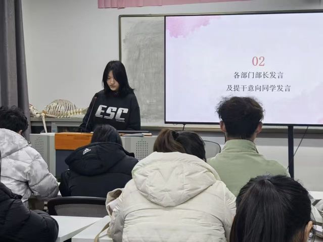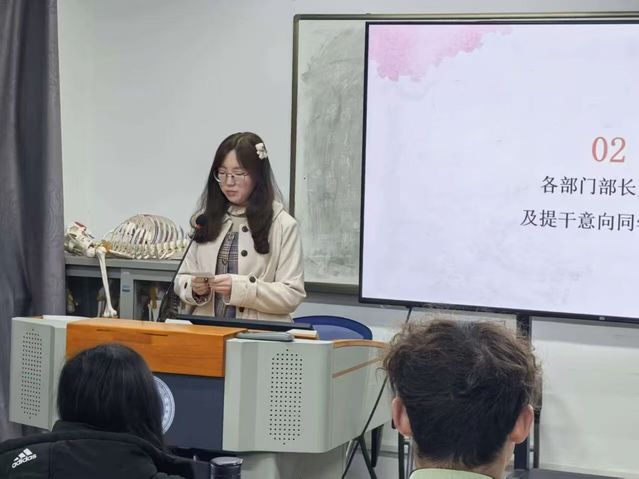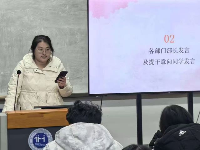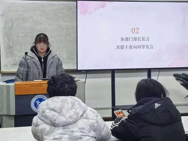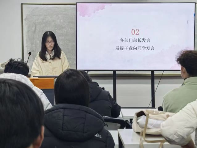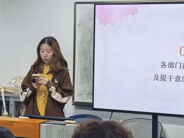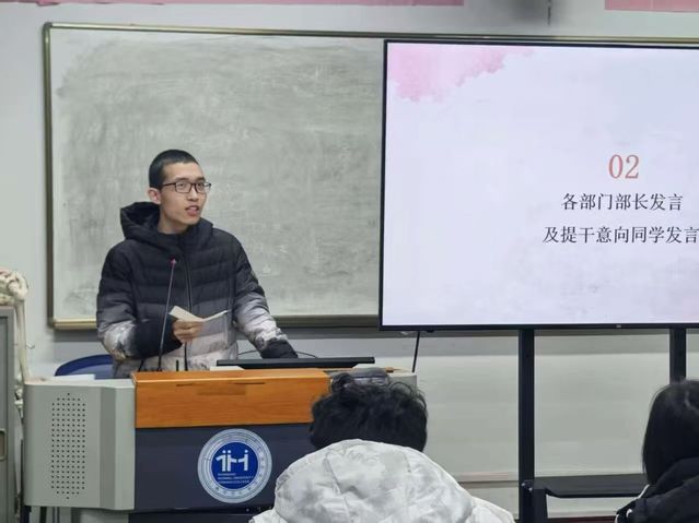 随后,各部门部长依次发言,结合部门职责总结过往活动成果、分享工作心得;有提干意向的同学也积极上台交流,畅谈对工作站未来发展的规划、对部门活动的优化建议,充分展现了工作站成员的责任担当与创新思路,现场交流氛围热烈而真挚。