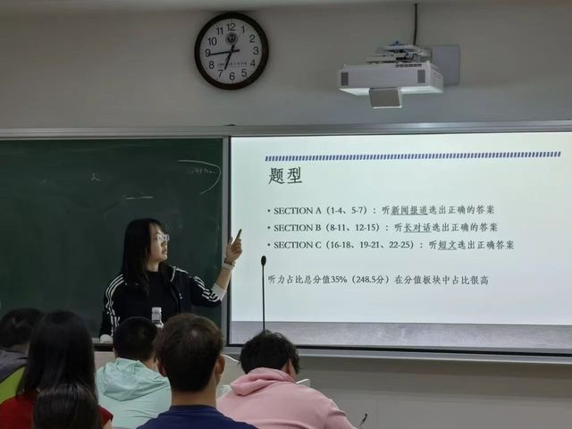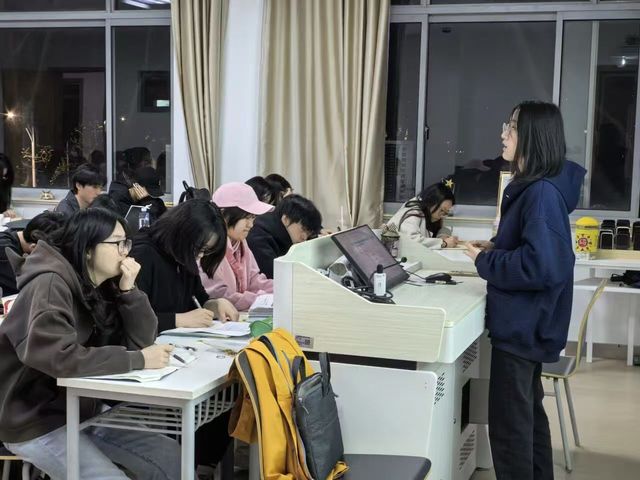 应对阶段挑战,于引领中传递方法。针对大学英语四级备考这一普遍需求,帮扶活动注重策略与信心的双重提升。结对人系统梳理考试题型、分值分布与核心考点,从听力精听到阅读速解,从写作框架到翻译要点,进行分项指导与经验分享。他们着重强调日常积累与科学规划的重要性,分享时间管理、词汇记忆、错题分析等实用技巧,帮助低年级同学明晰备考路径,减轻焦虑情绪,增强从容应考、稳步提分的信心,将备考过程转化为一次扎实的语言能力提升之旅。