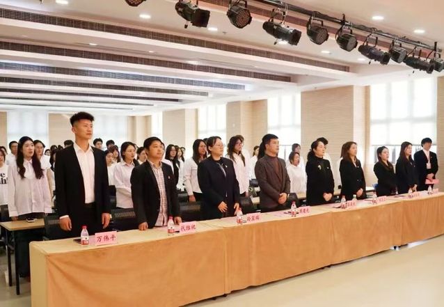 典礼在庄严的国歌声中拉开帷幕,全体与会师生肃立齐唱,激昂旋律回荡全场,彰显出学员们向党组织靠拢的坚定决心与青春担当。