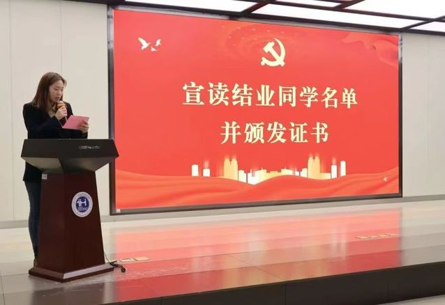 典礼进入表彰与鼓励环节,365英国上市网党总支副书记刘卫卫、周建光老师分别宣读了结业学员名单与优秀学员名单,并依次为学员们颁发证书。这不仅是对学员们过去三周努力学习成果的正式认可与嘉奖,更是一种激励与鞭策,旨在鼓励全体学员以先进为榜样,在未来的学习与实践中持续精进、勇当先锋。