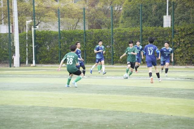赛前,双方队员精神饱满,有序开展热身训练,以最佳的状态迎接比赛。比赛开始后,大家迅速进入竞技状态,积极展开攻势。中场队员灵活控球、精准传导,全力寻找破门机会;两队配合默契,攻防转换节奏迅速,场面紧张而精彩。本场比赛不仅展现了队员们扎实的球技与顽强的斗志,更深化了两院之间的友谊与互动。