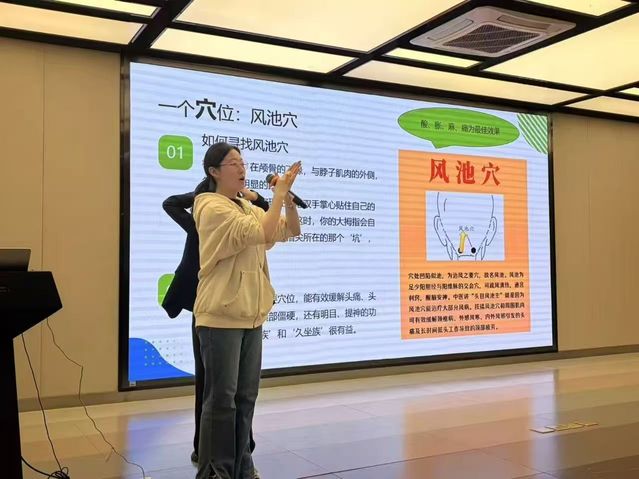 为帮助老师们舒缓工作压力,党员工作站学生团队带来了办公健康养生技巧分享,现场带领与会老师体验简单易操作的放松按摩方法,引导大家关注自身身心健康,以“健康生活、认真工作”的饱满状态投入育人事业。