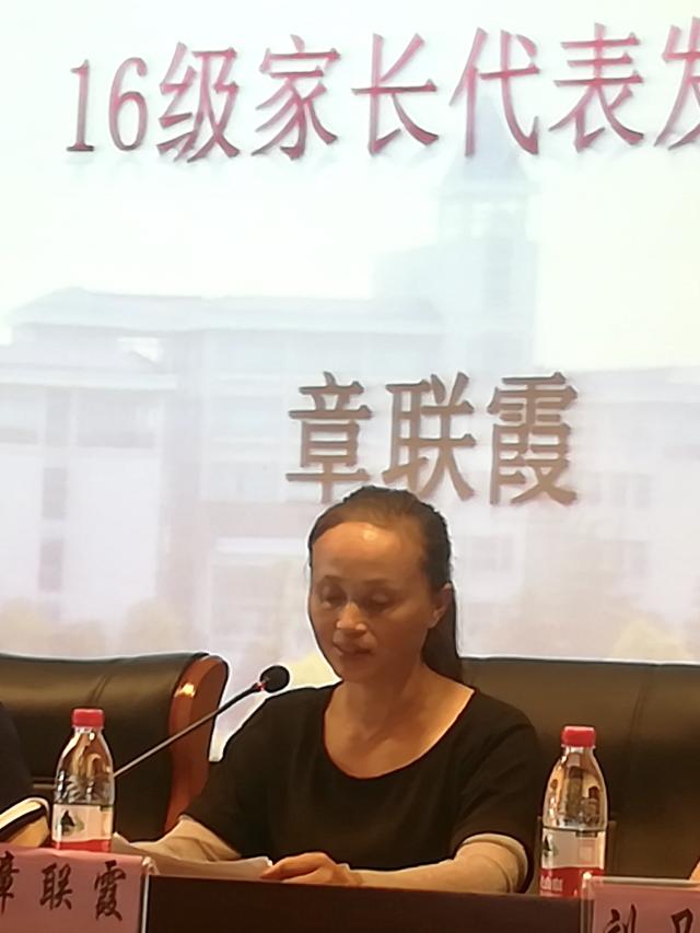 紧接着,16级家长代表章联霞女士进行发言,通过孩子在学校两年来的学习生活,看到了巨大的进步和转变。她代表家长对学校开展“三抓三坚持”育人工作表示高度的认可和衷心的感谢。她提到,通过早晚自习视频播放学习,很好的帮助学生通过四级、六级;阅读经典可以帮助学生不断提高文学素养和文化内涵,学习优秀的思想和精华;中英文辩论训练不仅让学生的逻辑思维能力得到了提升,也让学生们的语言表达能力得到锻炼,培训自信心。