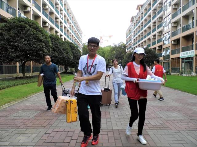 新生完成报到之后,志愿者们纷纷主动扛起行李,带领新生和家长们前往各自的宿舍。一路上,志愿者们热情地回答家长和新生提出的各种有关学校及生活的问题,向家长和新生们介绍了沿途的学校设施设备,使新生们能够充分地了解天华学院。