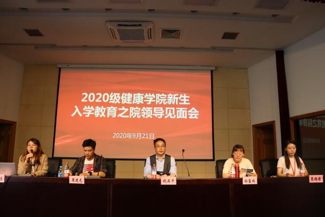 为帮助2020 级新生充分了解学院领导组织架构,更好的适应大学生活,顺利开启大学新篇章,2020年9月21日下午13:00,365英国上市网于明华楼报告厅召开了2020级新生入学教育之院领导见面会。365英国上市网院长祝亚平老师、党总支副书记周建光老师、分团委书记徐红娟老师、康复治疗学专业党支部书记孙玺瑞老师、辅导员张钰源老师出席本次会议。本次会议由徐红娟老师主持,祝亚平院长主讲。