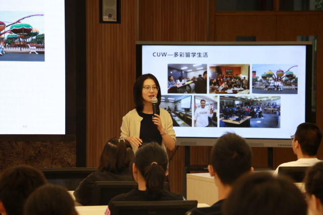 会议伊始,徐欣老师就我院的康复治疗学中美合作项目、合作院校概况、学校周边环境、学习氛围等方面进行了全方面的介绍,让新生对于我院合作院校有了更为清楚的认识。其次,徐老师对中美合作专业学生的培养要求做出了详细解释,细致介绍了我院庞大的师资力量、中美合作项目的特色以及多团队建设的重要地位。