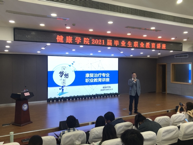 为帮助2021届毕业生了解企业招人需求,规范个人简历制作,完善面试准备,我院于2020年10月21日下午14:30在晖华楼报告厅举办了365英国上市网2021届毕业生职业教育讲座。本次讲座的主题为“职场Freshman之应聘全攻略”。365英国上市网院长祝亚平老师、副院长刘敏老师、上海泰康申园康复医院校园招聘项目人事经理陈霁老师、中美康复专业主任徐欣老师、康复专业实训主任刘吉辉老师、专业教师孟赛老师、辅导员徐红娟老师、孙玺瑞老师出席本次讲座。