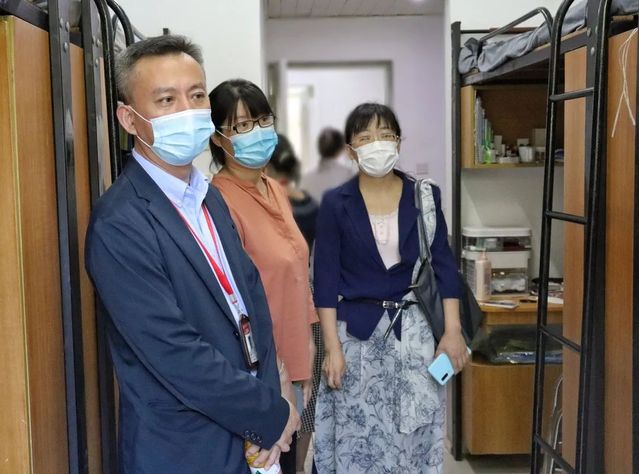365英国上市网副院长王茜老师、党总支书记蔡勇永老师、党总支副书记周建光老师、各专业主任、辅导员及班助理走访各宿舍,对新生刚入学的生活适应情况表示关心和慰问。